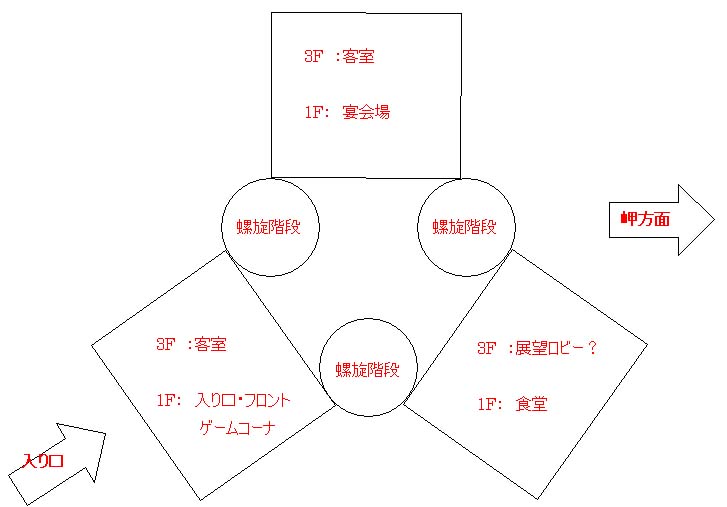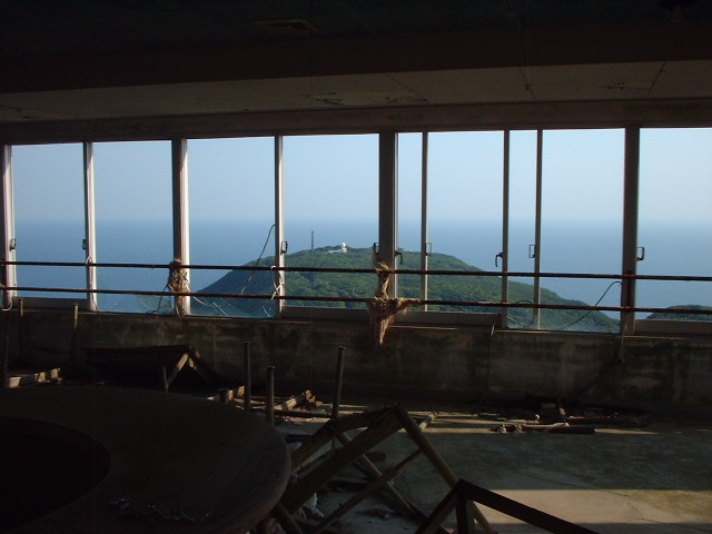 建物自体は比較的しっかりしているので各階を散策してみた。廃墟にありがちな落書きや侵入者のゴミは無く、純粋に風化の様子を見て取れる。畳や板張りの床は抜けているので客室には入れないのだがそれほど広い建物ではないので客室からどんな風景が見えていたのかは各部屋の入り口からでも十分見ることが出来る。3Fからみた岬側の眺めは最高で、岬周辺のどんな展望台よりもナイスな景色なんじゃねーの?と思うほど。これだけでもこのホテルに泊まる価値はあるよね、と思えた。当時の宿泊客はこんな景色が普通に眺められたので・・・私も思わずお外の写真を撮りまくってしまった。さきほどの展望台で見る景色よりも距離が岬に近づくようで、なんかイイんだよね。