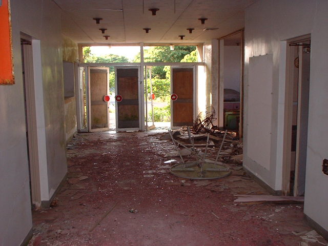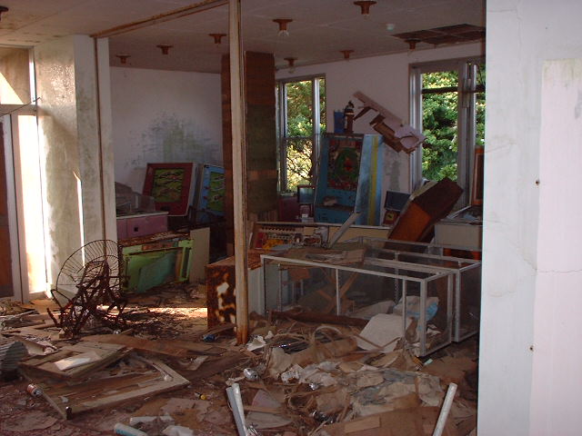 さて内部は荒れに荒れてボロボロである。いったい何年くらい放置されているんだろう? 入り口付近には昔懐かしいゲーム機がうち捨てられ床のタイルは剥がれている。窓もガラスが残っているモノはまれ、殆どが割れてしまっている。室戸岬といえば台風のメッカであり、しかも山の稜線付近にあるからして、この建物、毎年相当な暴風雨を受けていると思われる。もしかしたらホテルが閉まった原因も台風か?と思われるくらいスザマシイ・・・。