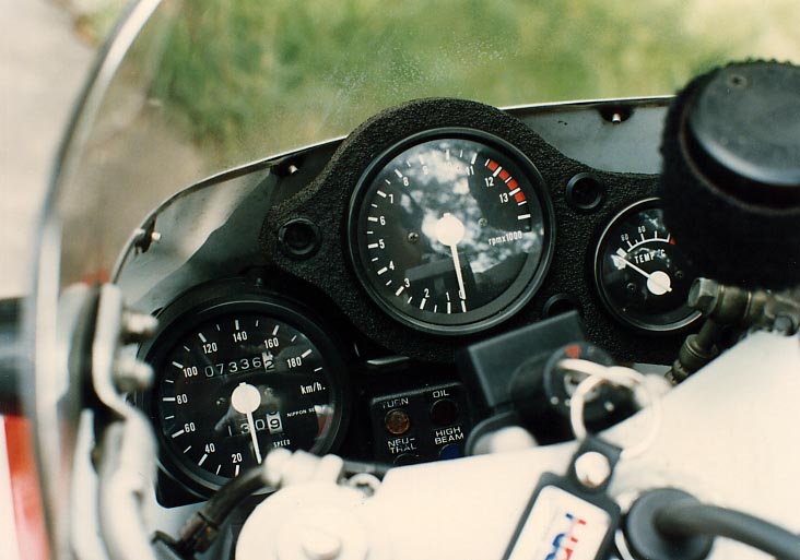 <メータ類> スピードとタコは分離できるタイプ。 レースを意識した渋い造りである |