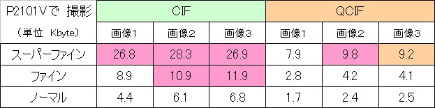 P2101Vは、カメラがついているので動画・静止画撮影ができます。静止画の撮影設定は、ドットサイズで2種類、クオリティでは3種類から選べる。つまり組み合わせにより6種類のモードがあることになります。