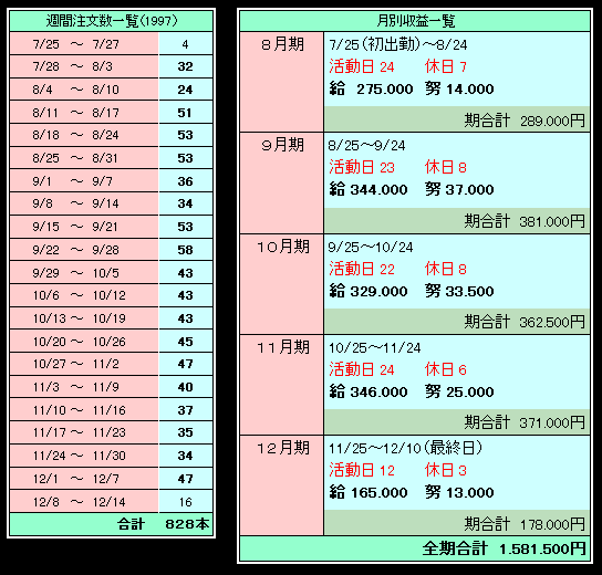 htmlにするの面倒なので画像にしちゃいました、ごめんね^^ チラシ全盛期を過ぎていたとはいえ(正確には末期だよな)完全週休2日で、これだ貰えました。 当時23歳だから相当なもんでしょ?ちょっと無理すれば(休まない)50万を超えるんでしょうけど さすがに体がぶっこわれそうなのでやめときました。